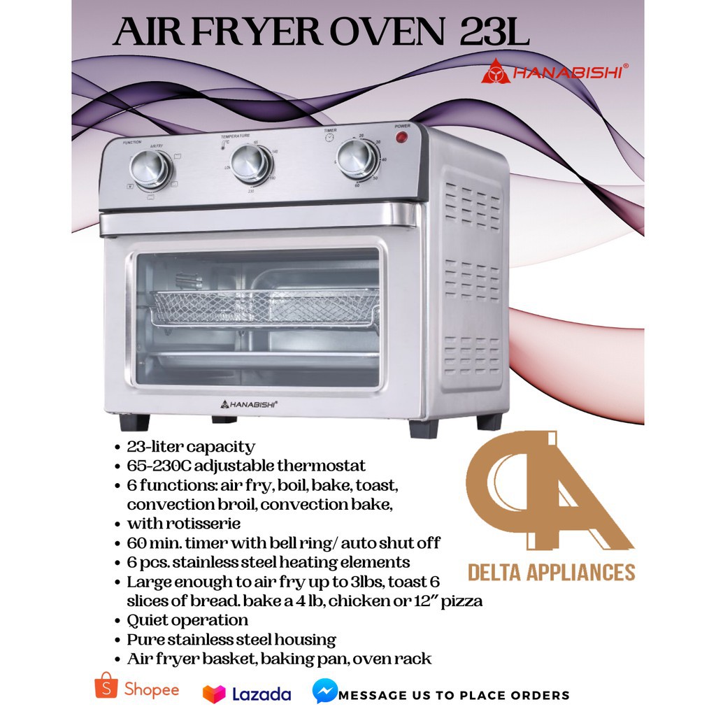 Hanabishi Air Fryer Hafeo 23Ss Manual - Hanabishi Air Fryer Oven Hafeo 23ss 10 278 /. The temperature controls allow you to adjust temperature up to 400 degrees. Air fry, boil, bake, toast, convection broil, convection bake 60 min
